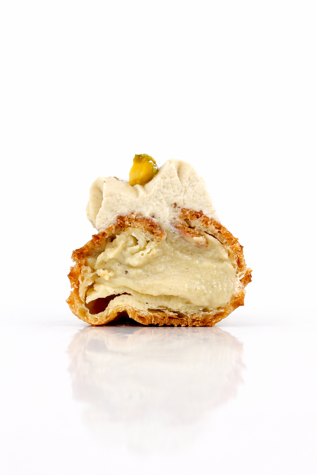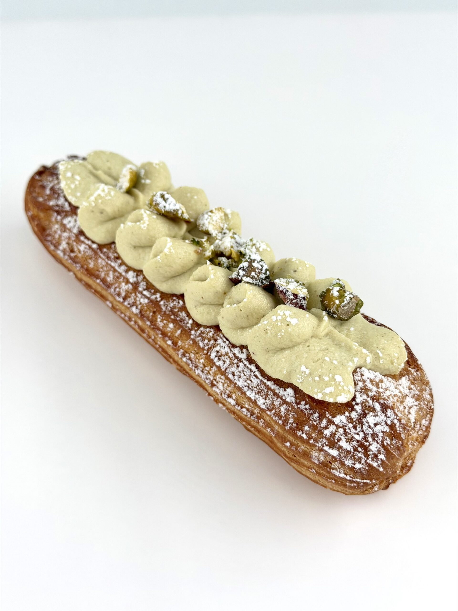 Pistaasikreemi, ja voit lisätä täytteeksi mansikan tai vadelman