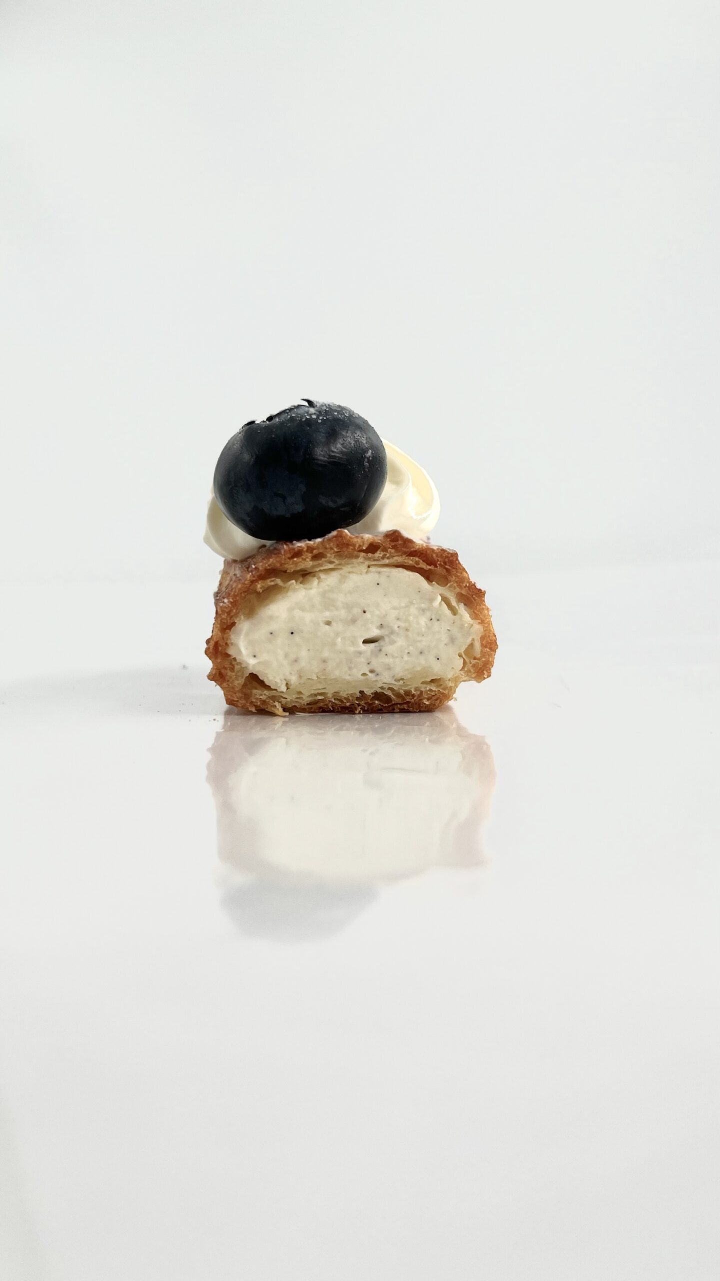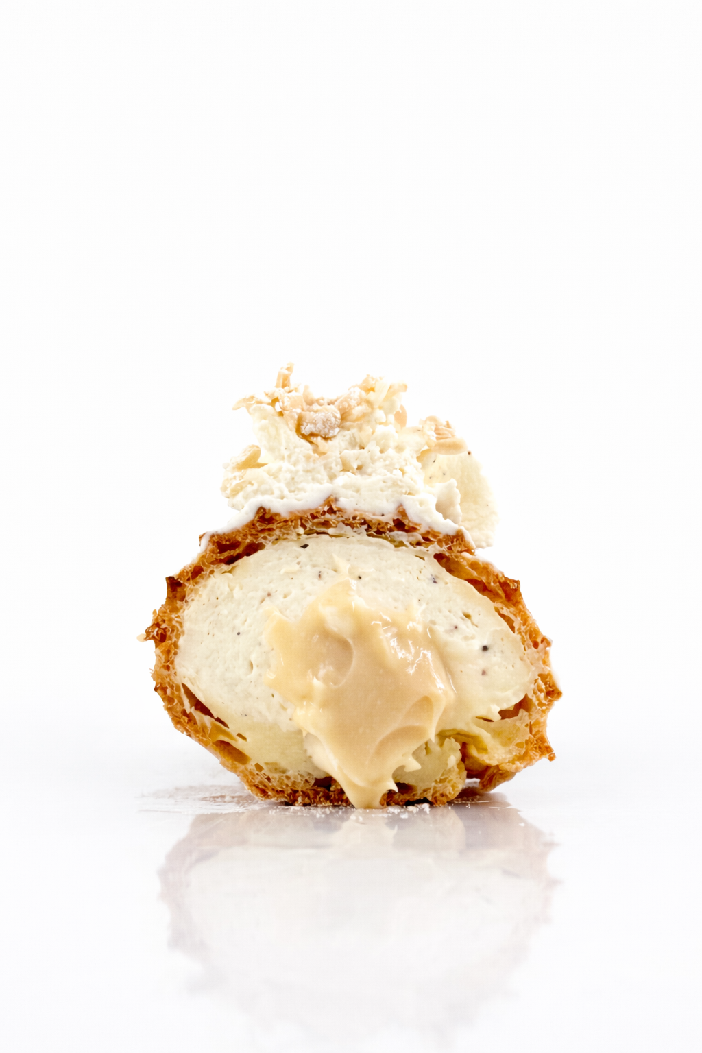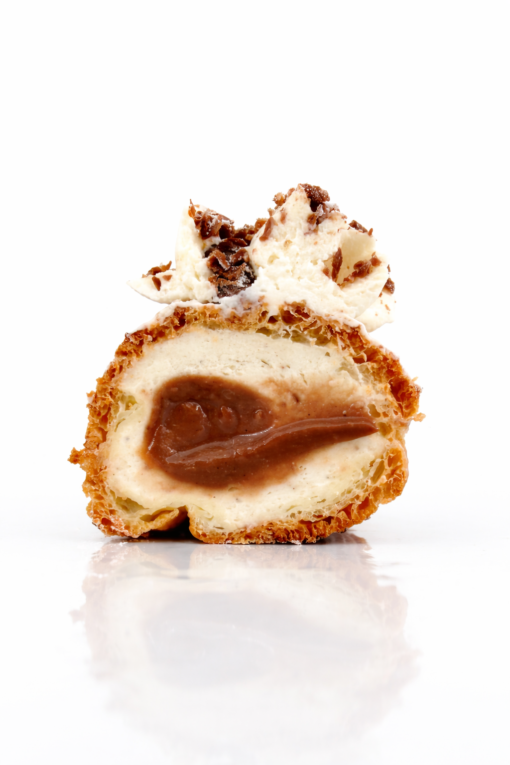 Vaniljakreemi, ja voit lisätä myös pehmeän suklaa- tai karamellitäytteen.