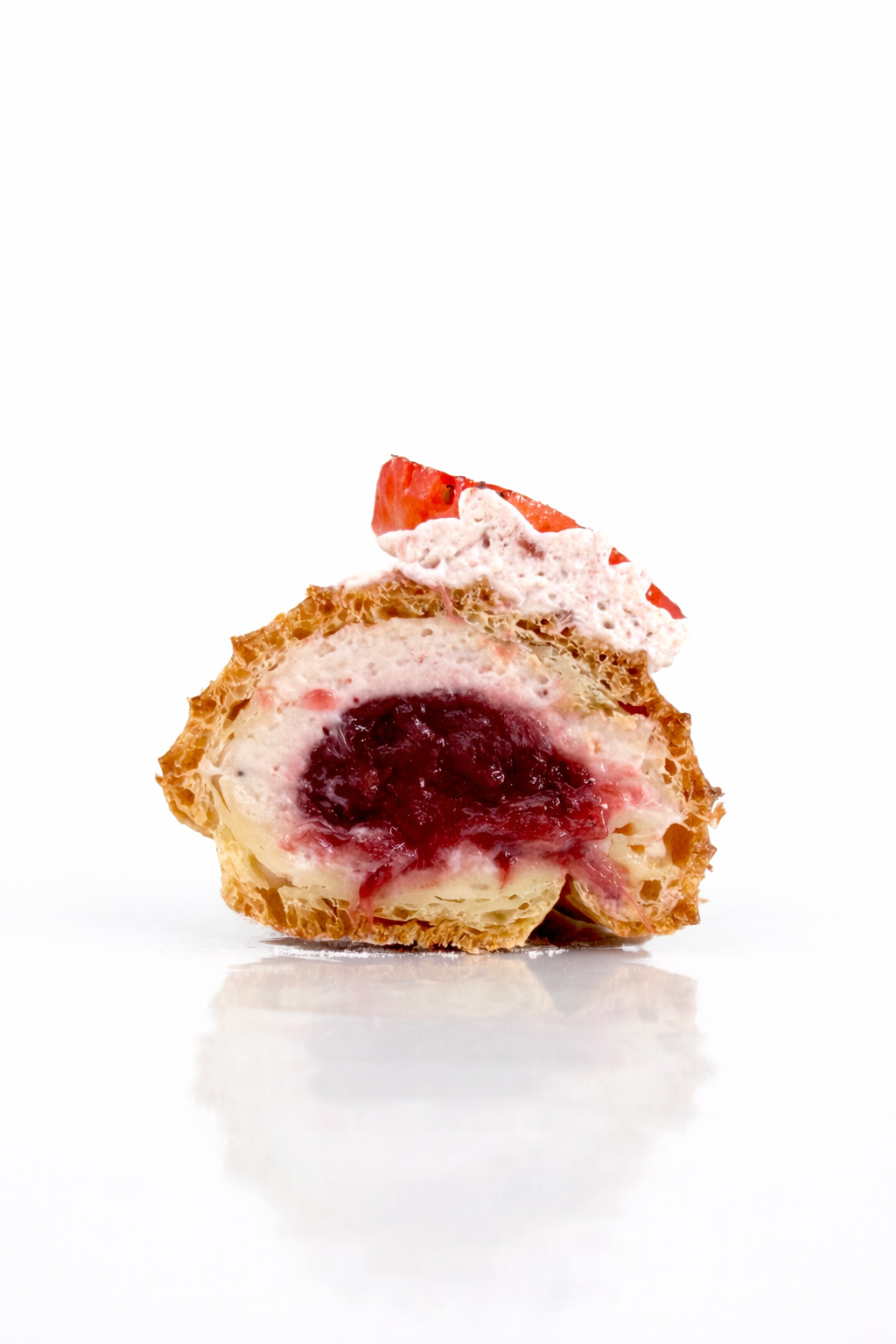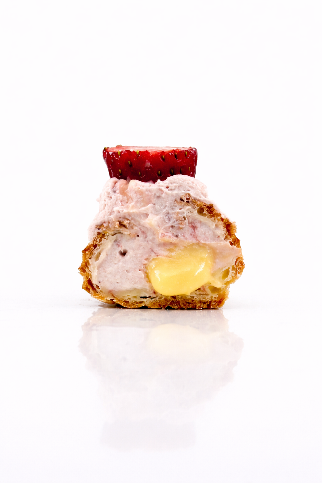Mansikkaganache ja mansikka tai lemoncurd -täyte